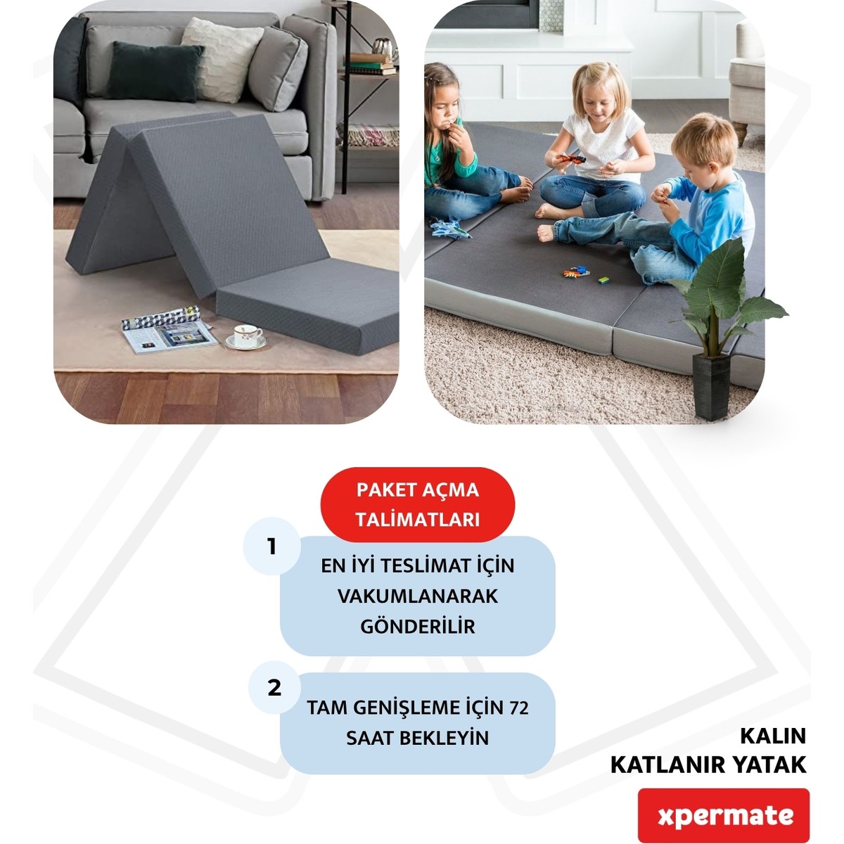 XPERMATE’nin Katlanır Sünger Yatak modeli, yer yatağı, katlanır yer minderi ve misafir yatağı olarak kullanım imkanı sunan mükemmel bir tek kişilik çözümdür.