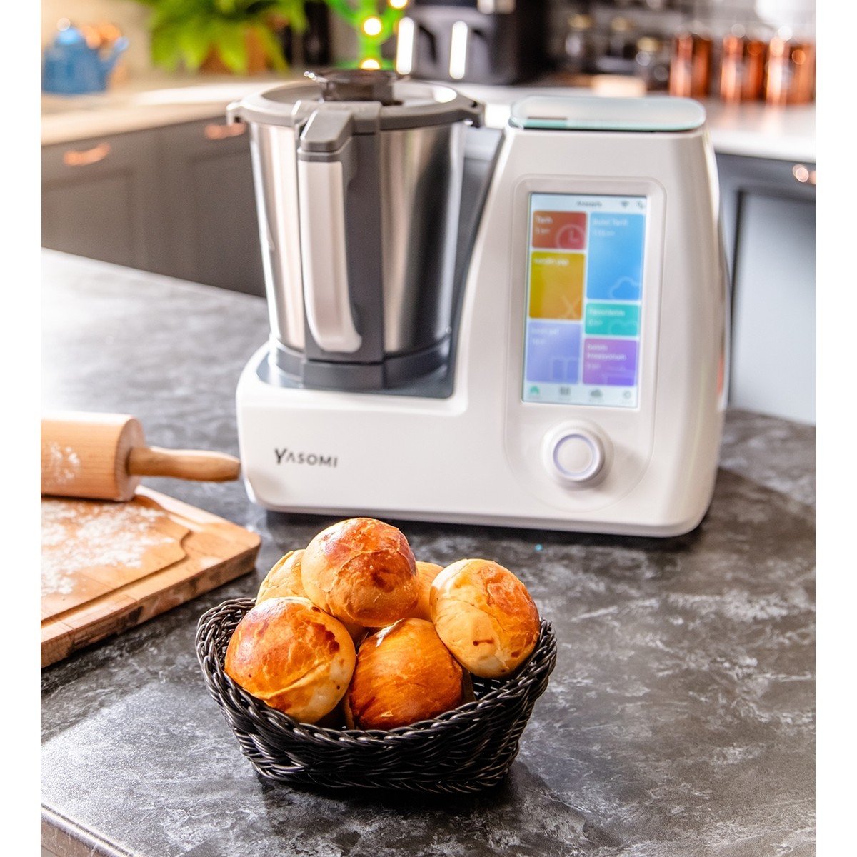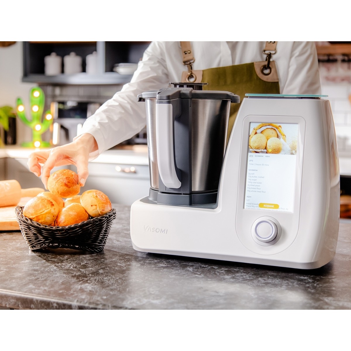 çok fazla fonksiyonu mevcut, yemek hazırlarken sizi yönlendirme özelliği var parçalayıp hazırlaması makine tarafından yapılıyor iş görür