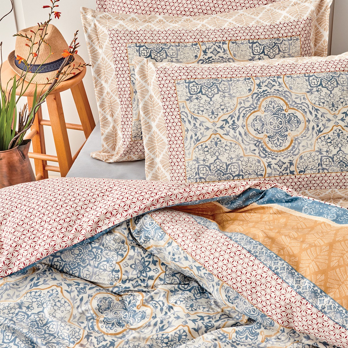 Gayet kaliteli güzel bir ürün 3 parça olarak çarşaf yok setin içinde alacak kişiler gönül rahatlıyla alabilirler