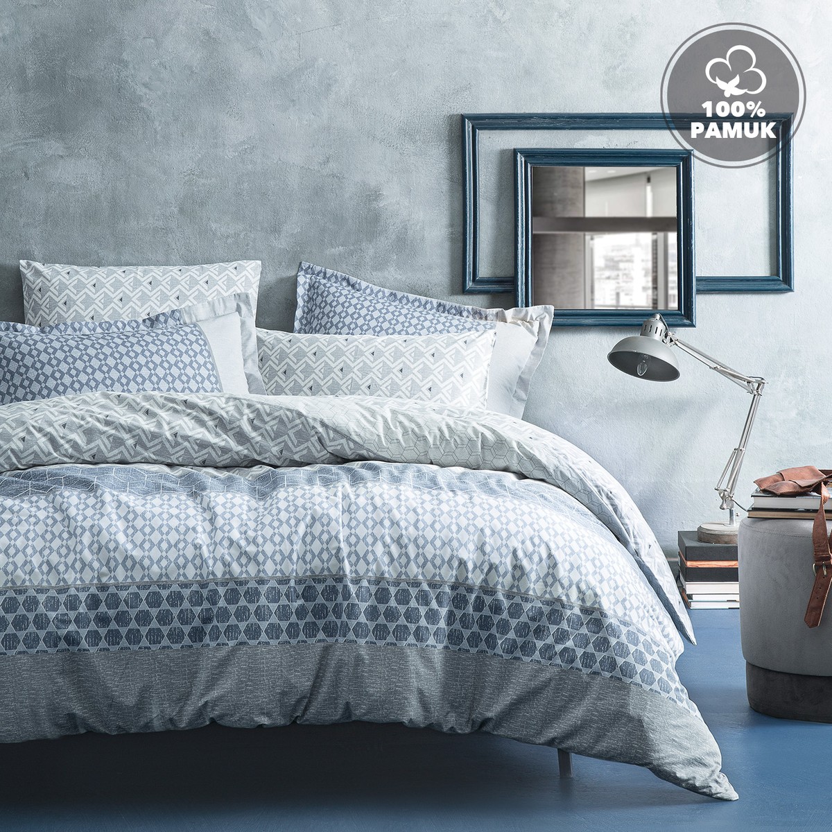 Mavi renk geçişlerini özgün desenlerle buluşturan Malin Nevresim Seti, kır evlerine özgü doğal şıklığı yatak odalarına taşıyor.; %100 Pamuk ; 52 Tel Dokuma Sıklığı ; Baskılı; Ürün İçeriği ve Ölçü Bilgisi : ; Nevresim: 200×220 cm (1 Adet) ; Set içeriğinde çarşaf bulunmamaktadır.; ; Volanlı Yastık Kılıfı: 50×70 cm (2 Adet); Yıkama Talimatı : ; 30 derecede yıkanması tavsiye edilir ; Ağartma yapılmamalıdır ; Orta ısıda ütülenebilir (Max 150°) ; Tamburlu kurutma yapılmamalıdır ; Kuru temizleme uygulanmamalıdır;; Set içeriğinde çarşaf bulunmamaktadır.