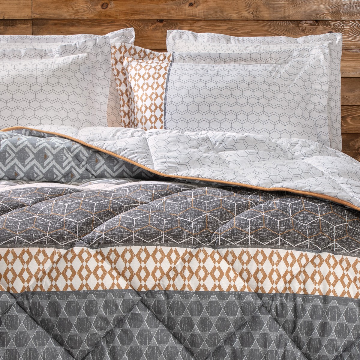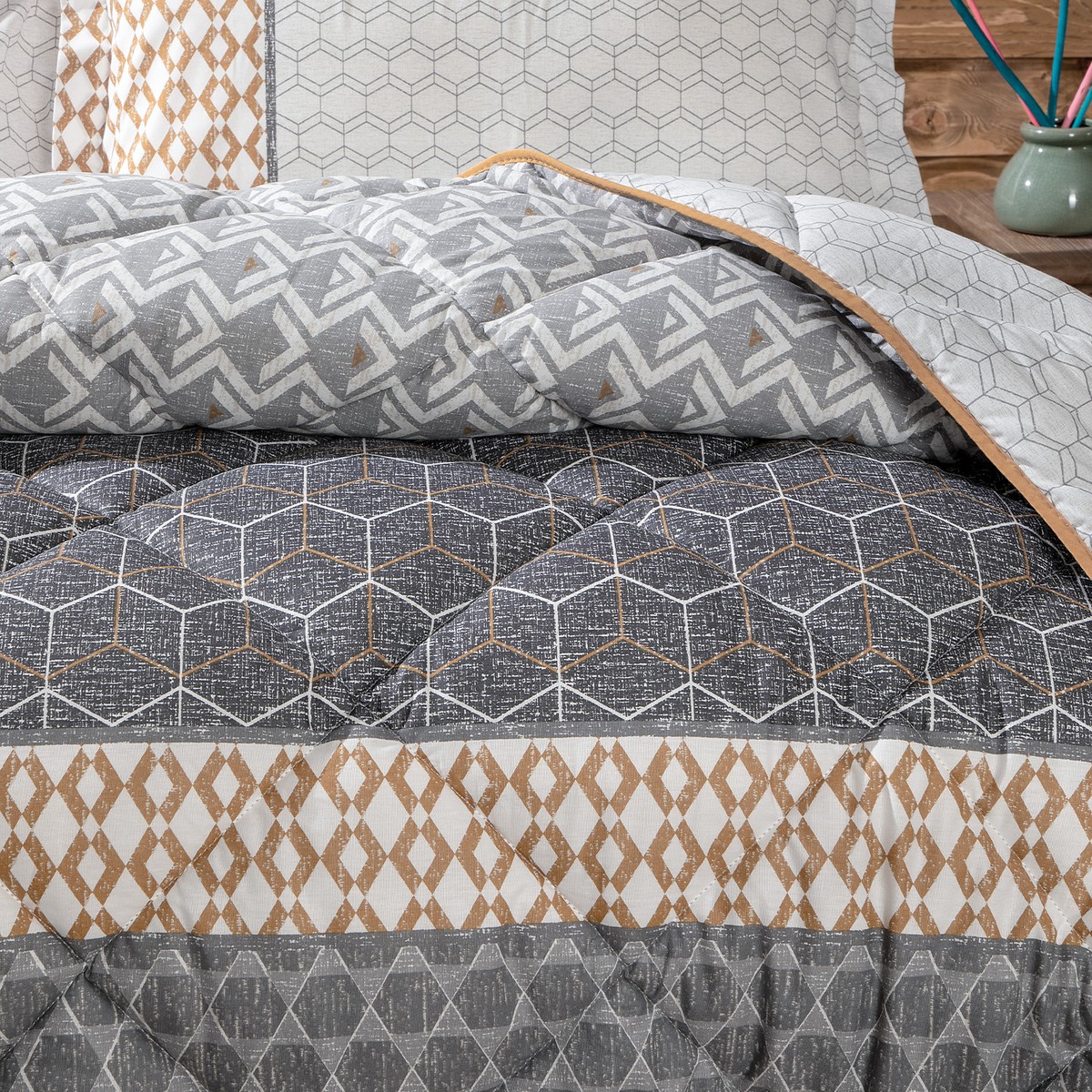 Modern ve zamansız bir tarza sahip yalın desenlerini hardal tonlarının sıcak ve canlı enerjisiyle buluşturan Taren Uyku Seti, pratik tasarımı sayesinde estetiği maksimum işlevsellik ile buluşturuyor.; Pamuk Kalitesi ; Desenli ; Çift Taraflı Kullanım; Dolgu Gramajı : ; 300 gr/m2; %100 Pamuk; 52 Tel Dokuma Sıklığı ; Ürün İçeriği ve Ölçü Bilgisi :; Yorgan: 155×215 cm (1 Adet) ; Düz Çarşaf: 180×240 cm (1 Adet) ; Volanlı Yastık Kılıfı: 50×70 cm (1 Adet); Yıkama Talimatı : ; 40 derecede yıkanması tavsiye edilir ; Ağartma yapılmamalıdır ; Ütülenmesi tavsiye edilmez; Orta ısıda ütülenebilir (Max 150°) ; Tamburlu kurutma yapılmamalıdır ; Kuru temizleme uygulanmamalıdır ; Benzer renklerle yıkanması tavsiye edilir ; Çarşaf: 30 derecede yıkanması tavsiye edilir ; Ağartma yapılmamalıdır ; Orta ısıda ütülenebilir (Max 150°) ; Tamburlu kurutma yapılmamalıdır ; Kuru temizleme uygulanmamalıdır;