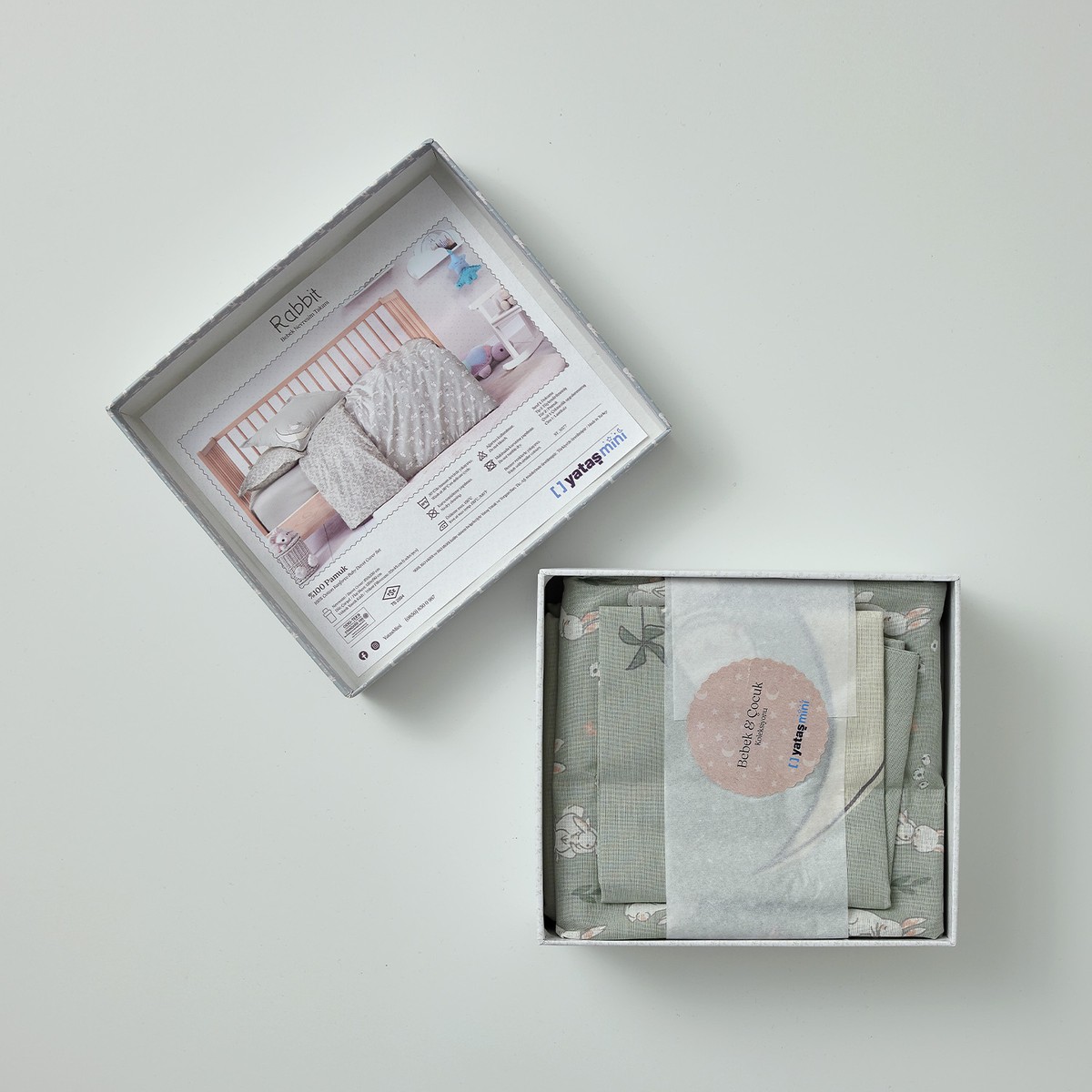 %100 Pamuk kumaşının yumuşacık dokusu ile bebeklerin hassas tenlerine özel olarak tasarlanan Rabbit Nevresim Takımı, doğal pamuk yapısının sağladığı yüksek nem emici özelliğiyle bebeğinize ihtiyacı olan konforlu ve sağlıklı uyku ortamını sunuyor. %100 Pamuk Kumaş ; 57 Tel Dokuma Sıklığı ; 3 Farklı Ölçü Seçeneği; Nevresim: 100×150 cm (1 Adet); Düz Çarşaf: 120×190 cm (1 Adet); Volanlı Yastık Kılıfı: 35×45 cm (1 Adet); Yatak Ölçü Uygunluk : ; 60×120 cm ; 70×120 cm; 70×130 cm ; 70×140 cm ; 80×130 cm; Yıkama Talimatı: ; 30 Derecede yıkanması tavsiye edilir. ; Ağartma yapılmamalıdır. ; Orta ısıda ütülenebilir (Max 150°). ; Tamburlu kurutma yapılmamalıdır. ; Kuru temizleme uygulanmamalıdır.;
