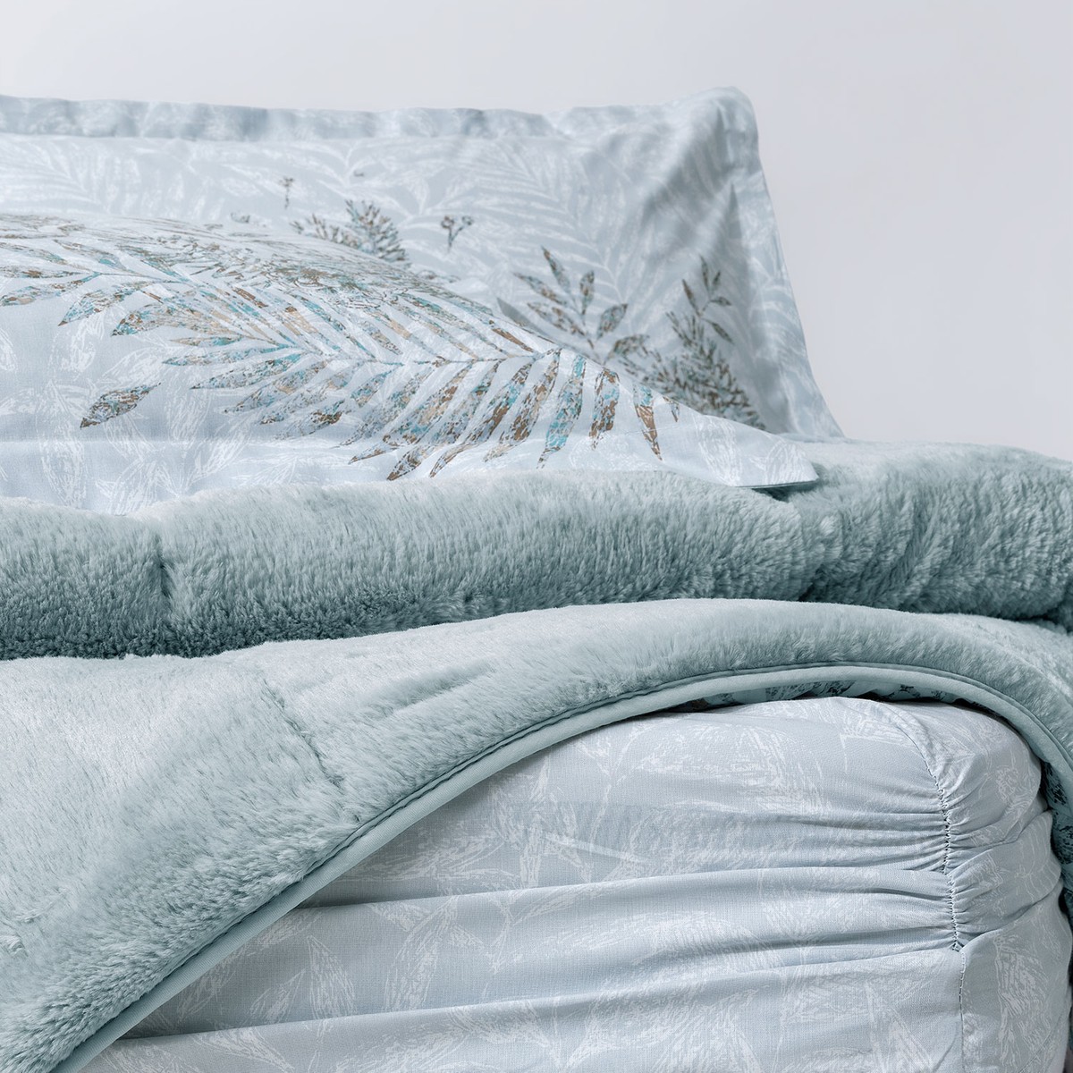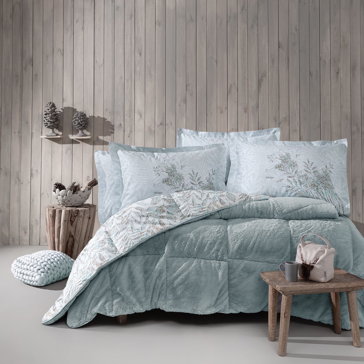 Rahatlığın ve Şıklığın Doğal Birleşimi; Çok Amaçlı Kullanım Kolaylığı;Moina Mint Triola Set, aynı zamanda yorgan işlevi görür.; Bu sayede nevresim veya yatak örtüsü kullanımına gerek kalmaz.; ;Yumuşak ve Rahat Bir Uyku ;Moina Triola Set, %100 doğal pamuk kalitesiyle üretilmiştir.; ;Nefes alabilen yüzeyi sayesinde uyku sırasında vücut sıcaklığını dengeler ve terlemeyi önler.; ;%100 Pamuk, Wellsoft Detaylı, Desenli Yorgan işlevi görür, ;Nevresim ya da yatak örtüsü kullanımına gerek kalmaz.; ;Moina Mint Triola Set, tene değen yüzeylerin %100 pamuk olması sayesinde her gece unutulmaz bir uyku deneyimi sunar.; ;İç yüzeyinin nefes alabilen kumaş yapısı, uyku sırasında vücut sıcaklığını dengeleyerek terlemeyi önler ve uyku bölünmelerini minimuma indirir.; ;Kumaş Dokuması: Battaniye Yüzeyli Yorgan: Üst Kumaş %100 Polyester, Wellsoft Kumaş ; Alt Kumaş: %100 Pamuk İçerikli Kumaş ;Ürün İçeriği ve Ölçü Bilgisi: ;300 gr/m2 Elyaf Dolgu ;Dokuma Sıklığı: 57 Tel ;Yorgan: 155×215 cm (1 Adet) ;Lastikli Çarşaf: 100x200x35 cm (1 Adet) ;Volanlı Yastık Kılıfı: 50×70 cm (1 Adet) ;Yıkama Talimatı: ;30 derecede yıkanması tavsiye edilir.; ;Düşük devirde yıkama yapılır.; ;Sıvı deterjan kullanılması önerilir.; ;Sererek kurutulması tavsiye edilir.; ;Ağartma yapılmamalıdır.; ;Ütülenmesi tavsiye edilmez.