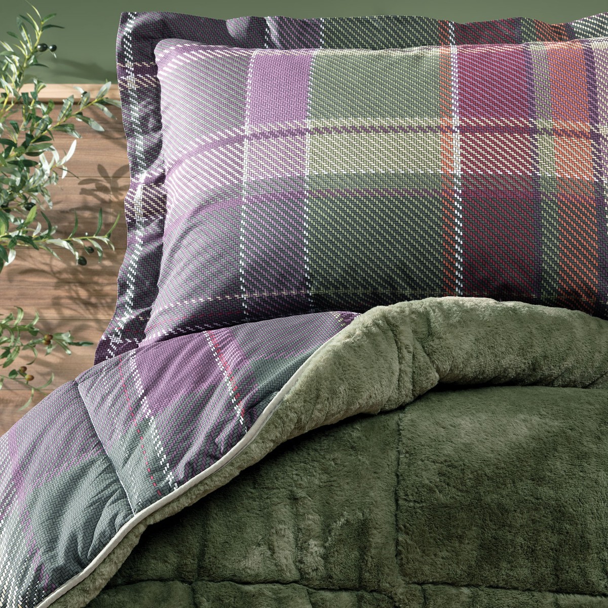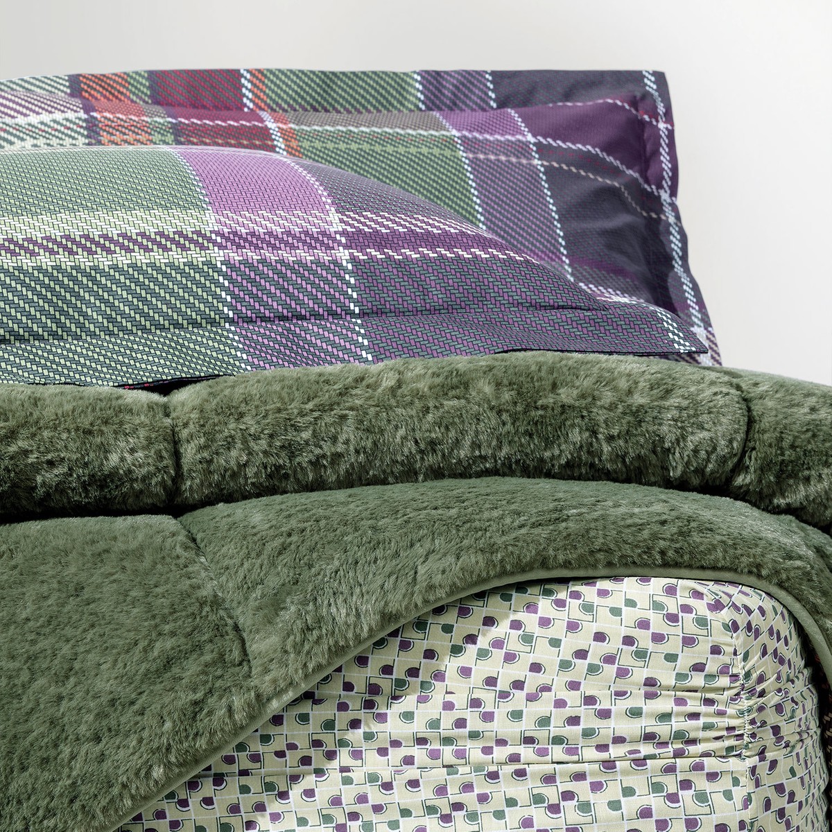Doğanın Sakinliği Yatak Odalarında ; Mosi Haki Triola Set, yeşil ve mor tonlarıyla yatak odalarına doğanın huzurunu getirir.; ; Yumuşak dokusuyla konforlu bir uyku deneyimi sunarken, lastikli çarşafı sayesinde yatak üzerinden kayma yapmaz.; ; Üstelik yorgan işlevi görür, nevresim ya da yatak örtüsü kullanımına ihtiyaç duyulmaz.; ; %100 Pamuk, Wellsoft Detaylı, Desenli ; Kumaş Dokuması: ; Battaniye Yüzeyli Yorgan: Üst Kumaş %100 Polyester, Wellsoft Kumaş ; Alt Kumaş: %100 Pamuk İçerikli Kumaş ; 57 Tel Dokuma Sıklığı ; Tog Değeri: 10; Ürün İçeriği ve Ölçü Bilgisi: ; Yorgan: 155×215 cm (1 Adet) ; Lastikli Çarşaf: 100x200x35 cm (1 Adet) ; Volanlı Yastık Kılıfı: 50×70 cm (1 Adet) ; Yıkama Talimatı: ; 30 derecede yıkanması tavsiye edilir.; ; Düşük devirde yıkama yapılır.; ; 10 kg ve üzeri makinede yıkama tavsiye edilir.; ; Sıvı deterjan kullanılması önerilir.; ; Sererek kurutulması tavsiye edilir.; ; Ağartma yapılmamalıdır.; ; Ütülenmesi tavsiye edilmez.