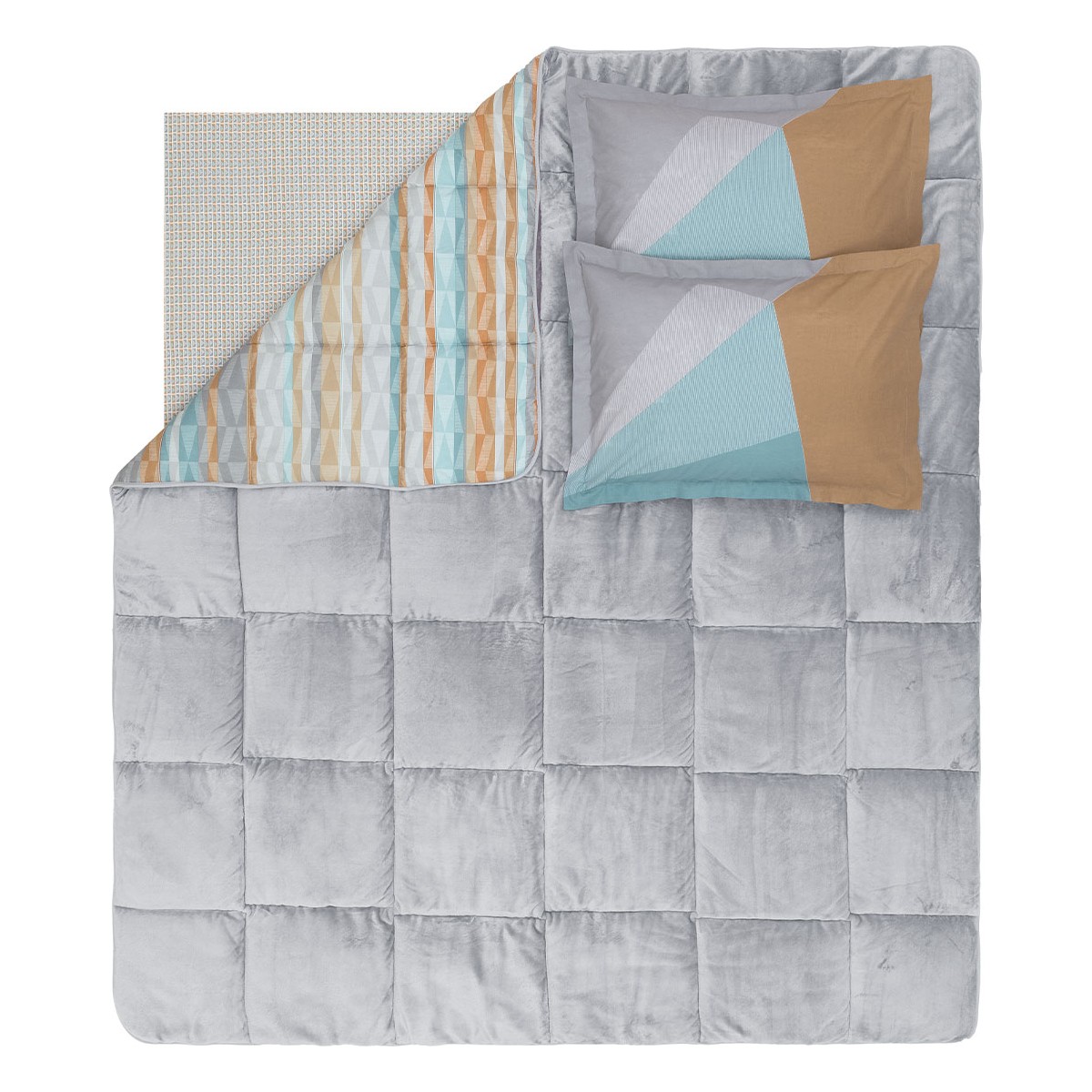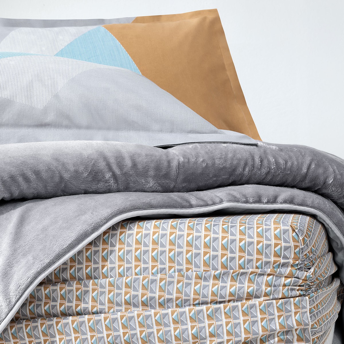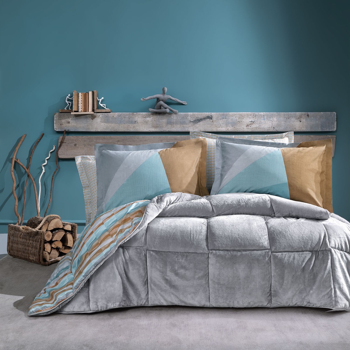 Modern Konforun Zirvesi Çok Yönlü Kullanım İmkanı ; Rach Triola Set, yorgan işlevi görerek ekstra nevresim veya yatak örtüsü kullanımına gerek bırakmaz.; ; Yumuşak ve Rahat Bir Uyku ; Moina Triola Set, %100 doğal pamuk kalitesiyle üretilmiştir.; ; Nefes alabilen yüzeyi sayesinde uyku sırasında vücut sıcaklığını dengeler ve terlemeyi önler.; ; %100 Pamuk, Wellsoft Detaylı, Desenli Yorgan işlevi görür.; ; Nevresim ya da yatak örtüsü kullanımına gerek kalmaz.; ; Rach Gri Triola Set, yatak odalarına sofistike bir dokunuş yaparak şıklığı ve rahatlığı bir araya getirir.; ; %100 pamuk yüzeylerin yumuşak dokusuyla yatak odalarını huzurla kaplayan Rach Gri Triola Set, aynı zamanda nefes alan yapısıyla uyku bölünmelerini önler.; ; Kumaş Dokuması: ; Kumaş Dokuması: ; Battaniye Yüzeyli Yorgan: Üst Kumaş %100 Polyester, Wellsoft Kumaş ; Alt Kumaş: %100 Pamuk İçerikli Kumaş ; 300 gr/m2 Elyaf Dolgu ; Dokuma Sıklığı: 57 Tel ; Tog Değeri: 10; Ürün İçeriği ve Ölçü Bilgisi: ; Yorgan: 195×215 cm (1 Adet) ; Lastikli Çarşaf: 160x200x36(1 Adet) ; Volanlı Yastık Kılıfı: 50×70 cm (2 Adet) ; Yıkama Talimatı: ; 30 derecede yıkanması tavsiye edilir.; ; Düşük devirde yıkama yapılır.; ; 10 kg ve üzeri makinede yıkama tavsiye edilir.; ; Sıvı deterjan kullanılması önerilir.; ; Sererek kurutulması tavsiye edilir.; ; Ağartma yapılmamalıdır.; ; Ütülenmesi tavsiye edilmez.