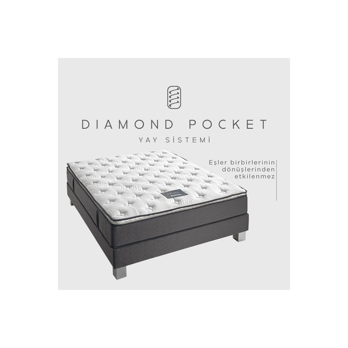 Uykucu ailesinin en üst seviye yatağı, yaylı yatak sevenlere özel Diaomond Pocket Yay sistemini Visco ve diğer birçok özellikle buluşturarak tasarlandı. Kumaşında özel bir teknik ile kullanılan aloe vera özleri rahatlığı ve yenilenmeyi sağlar. Ekstra yaylanma etkisi sağlayan viyole kesim sünger pedi eşsiz bir konfor ve uyku deneyimi sunar.