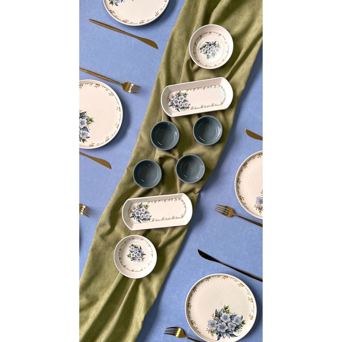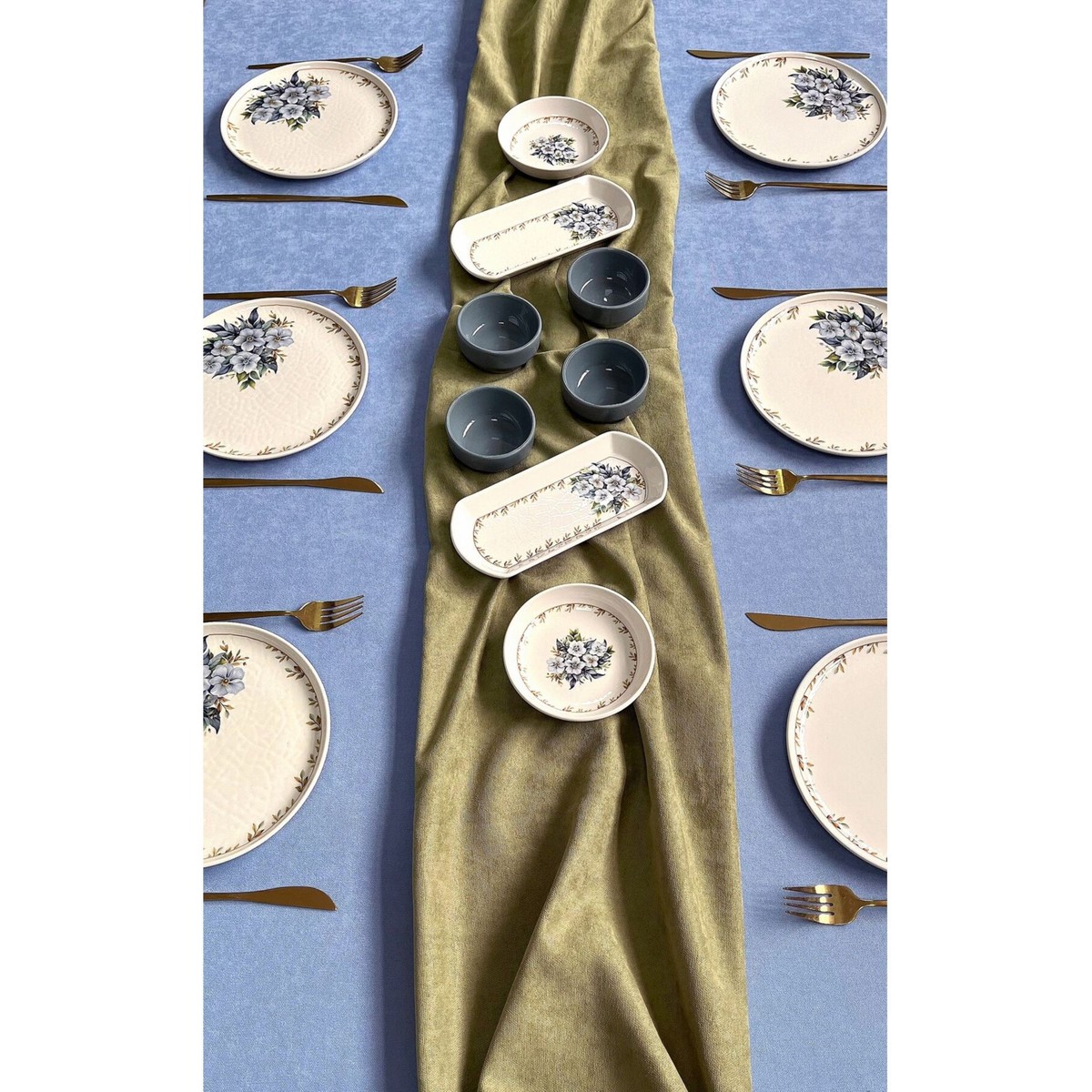 Yedivere Çiçeği 6 Kişilik 14 Parça Kahvaltı Takımı ; 6 adet 20 cm pasta tabağı ; 2 adet yuvarlak kahvaltılık ; 4 adet sosluk; 2 adet oval sunum kahvaltılık tabağından oluşmaktadır ;