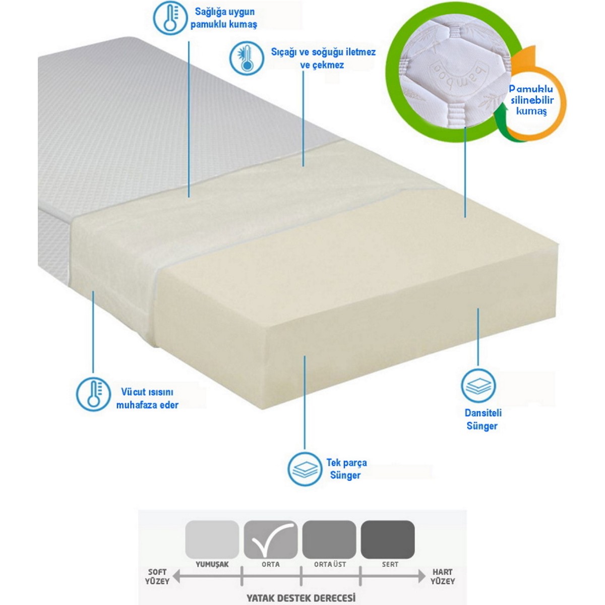 Soft Bed 100X190X20  Bambu Kumaş Yaysız Sünger Yatak