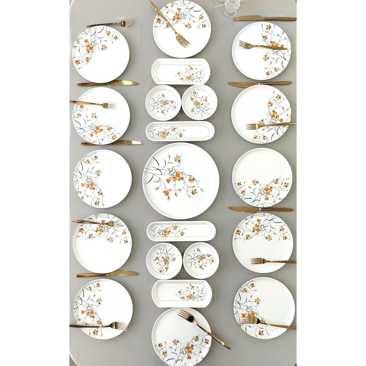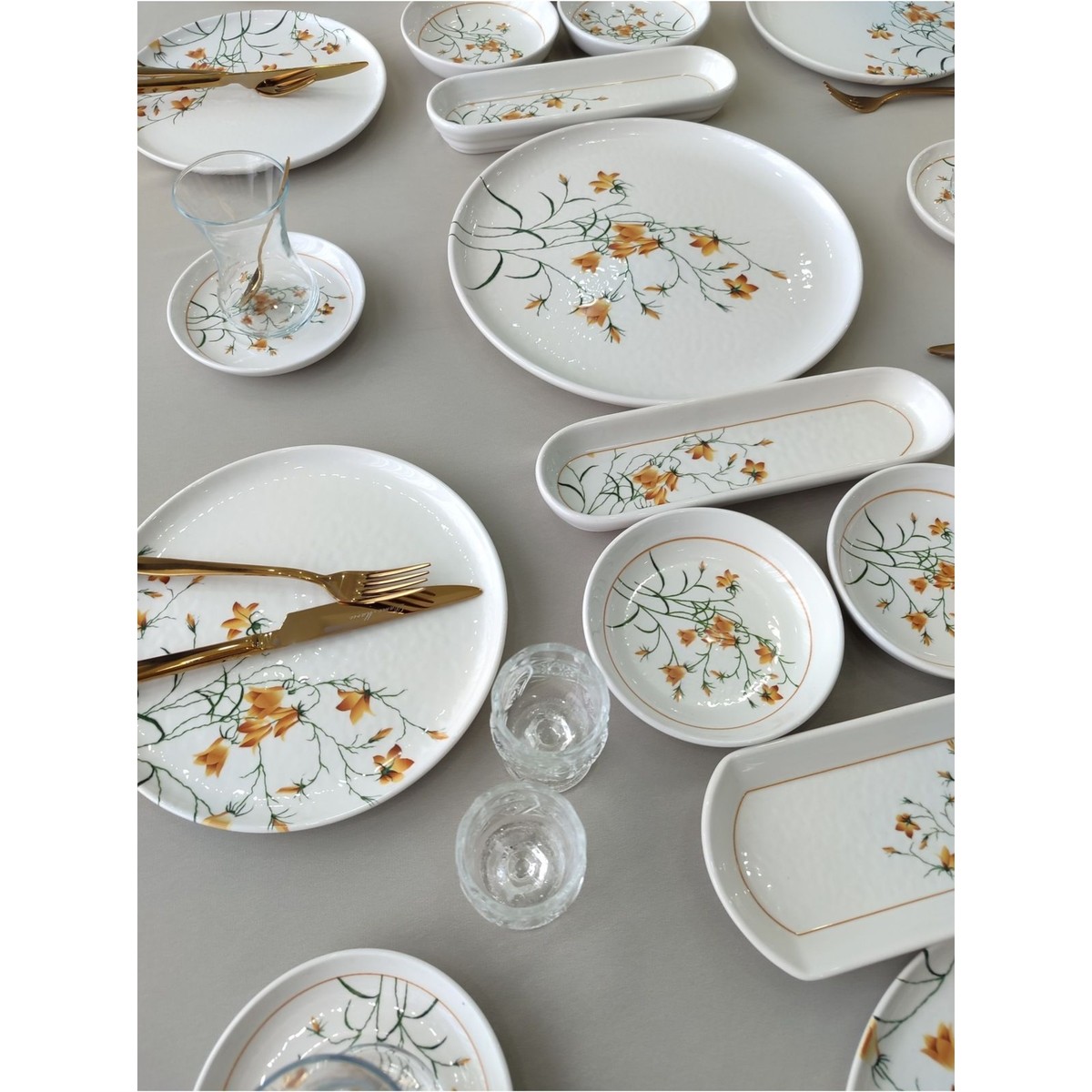 Çiğdem Model 12 Kişilik 21 Parça Kahvaltı Takımı Kahvaltı Seti – 12 Adet 20 cm servis tabağı – 4 adet yuvarlak kahvaltılık -2 adet zeytinlik -2 adet oval kahvaltılık – 1 adet 26 cm servis&sunum tabağından oluşmaktadır.