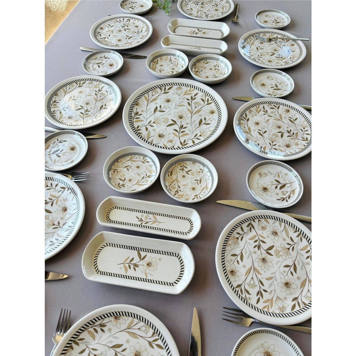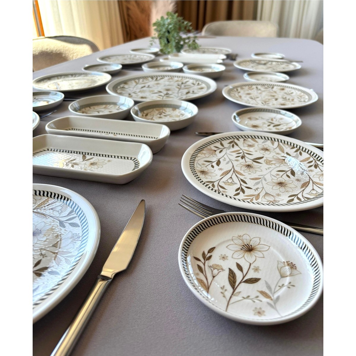– Yuvarlak formu ile modern tasarımı, sofranızda şık bir görünüm sağlar.; – 25 parça içeren geniş set, aile ve arkadaşlarınızla keyifli kahvaltılar için idealdir.; – Yüksek kaliteli seramik malzemesi sayesinde uzun ömürlü kullanım sunar.; – Mikrodalga fırında güvenle kullanılabilme özelliğiyle pratiklik kazandırır.; – Türk menşeli olmasıyla yerel zevkleri yansıtan bir tasarım anlayışına sahiptir.