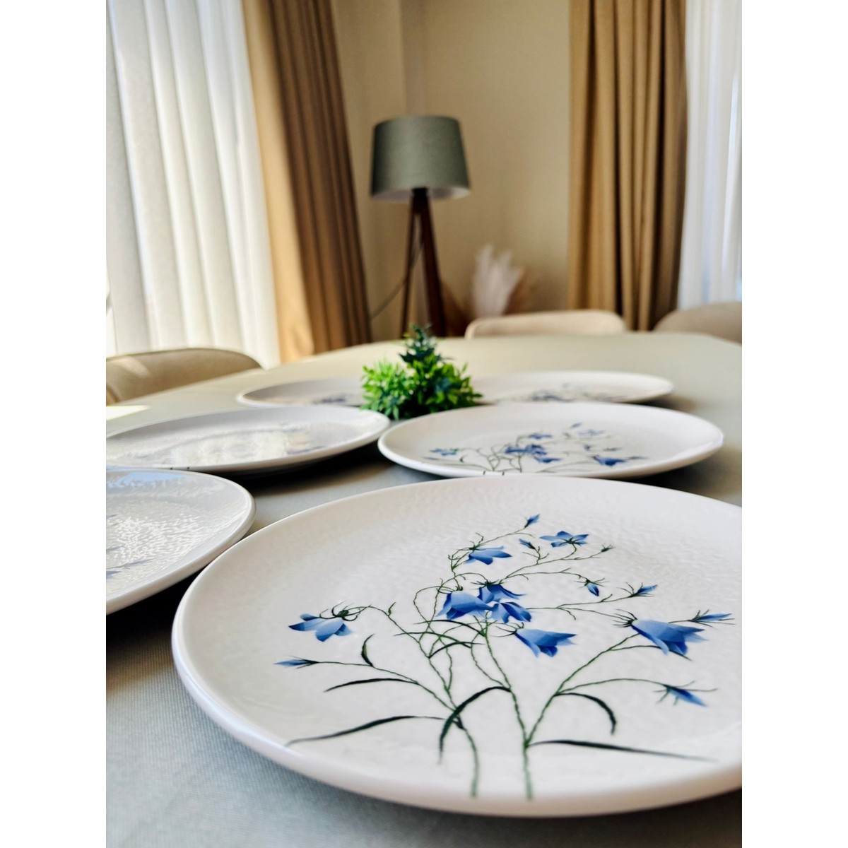 Mavi çiğdem 6 adet 25 cm servis Sunumluk tabağından oluşmaktadır ; Düşük derecede makinede yıkanabilir ; Ürünlerimiz özenle paketlenip kargolanma;