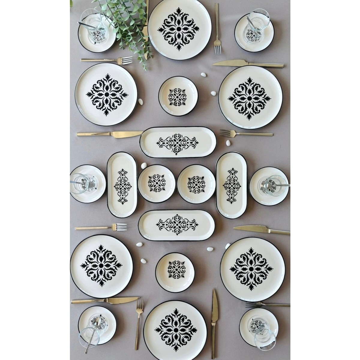 6 adet servis tabağı6 adet çay tabağı 2 adet byük oval sunum 4 adet yuvarlak kase2 adet oval peynirlikten oluşmaktadır.; – Yuvarlak tasarımı ile modern mutfakların vazgeçilmezi, şık ve estetik görünüm sunar.; – 20 parçadan oluşan geniş set, aile kahvaltısından misafirlerinize hazırlayacağınız özel sofralara kadar her türlü ihtiyaç için idealdir.; – Yüksek kaliteli seramik malzemesi sayesinde uzun ömürlü kullanım vaat eder ve kolay temizlenebilir özelliğiyle pratiklik sağlar.; – Mikrodalga fırında güvenle kullanılabilen yapısıyla zaman kazandırırken aynı zamanda lezzeti korur.; – Türkiye’de üretilmiş olup yerel kaynaklı malzemelerle sürdürülebilir bir tercih sunar.;