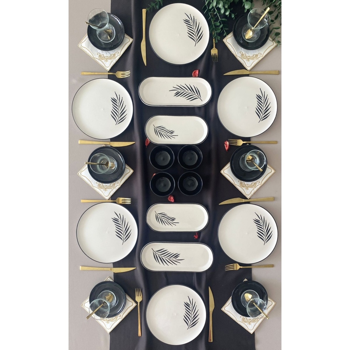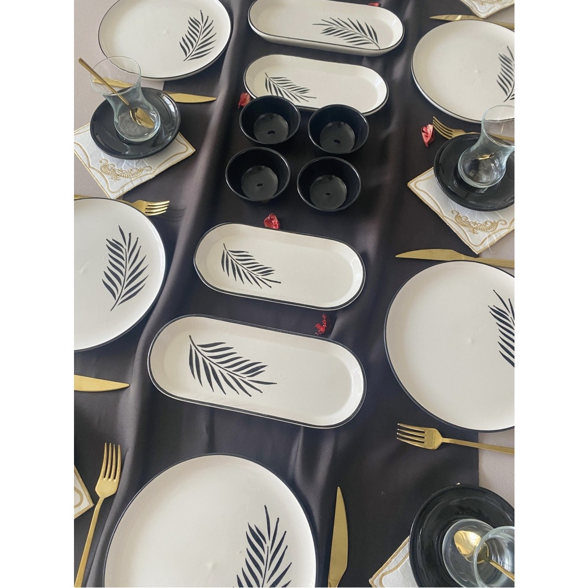 Yiğit Seramik Züccaciye Siyah Palmiye 6 Kişilik 20 Parça Kahvaltı Takımı (2)