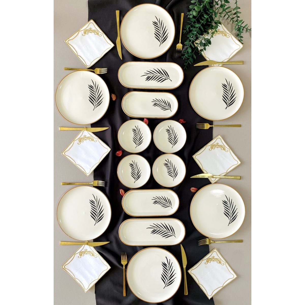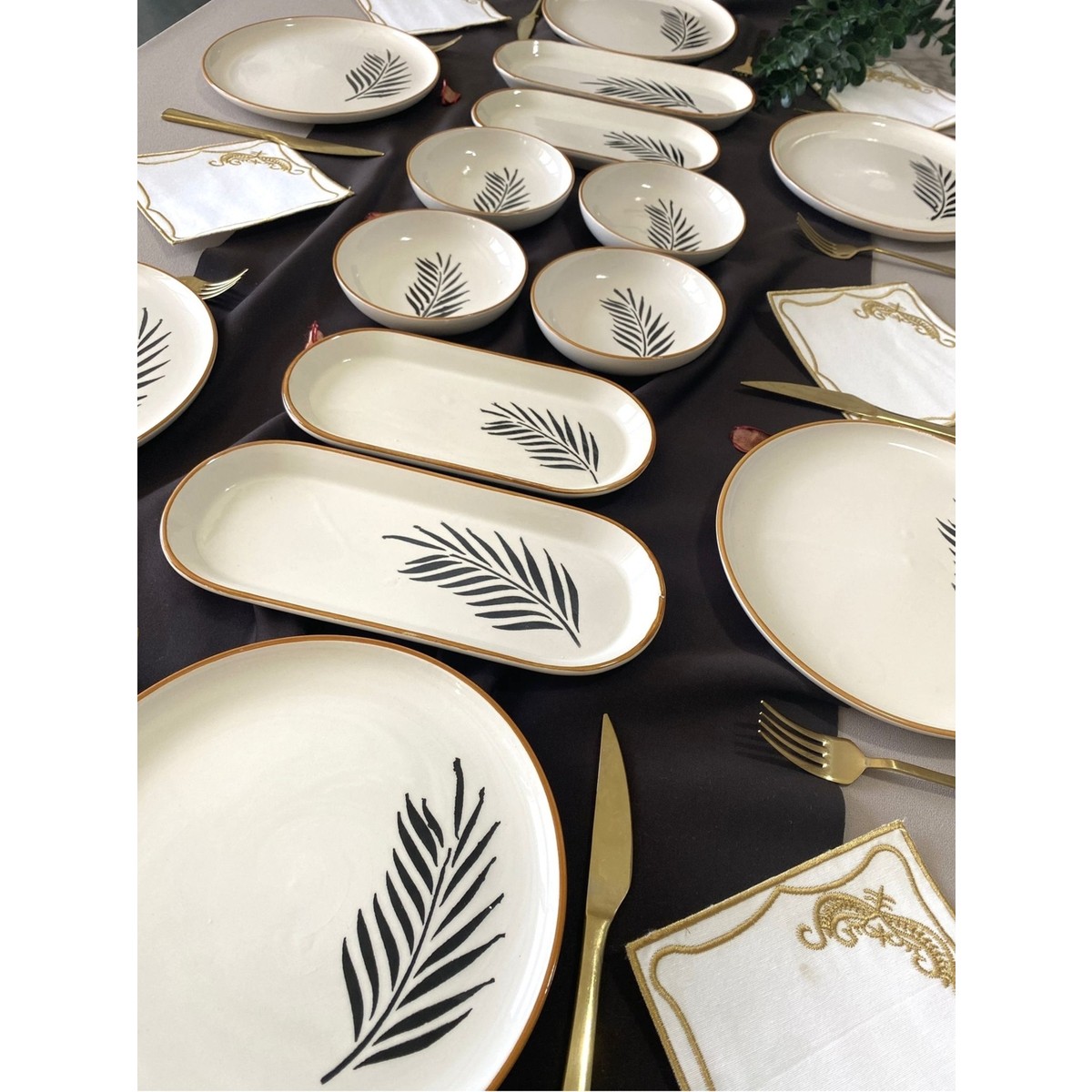 Yiğit Seramik Züccaciye Söğüt Yaprağı 6 Kişilik 14 Parça Kahvaltı Takımı