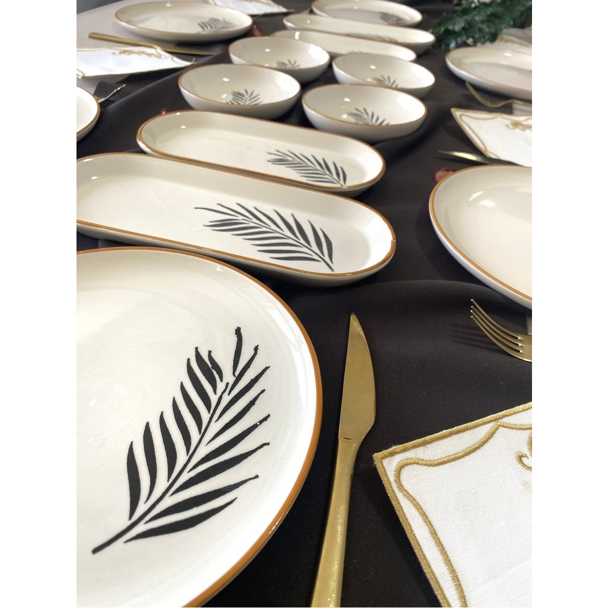 Söğüt Yaprağı 6 Kişilik 14 Parça Kahvaltı Takımı6 adet yuvarlak servis2 adet oval peynirlik 2 adet oval sunumluk4 adet yuvarlak kaseden oluşmaktadır