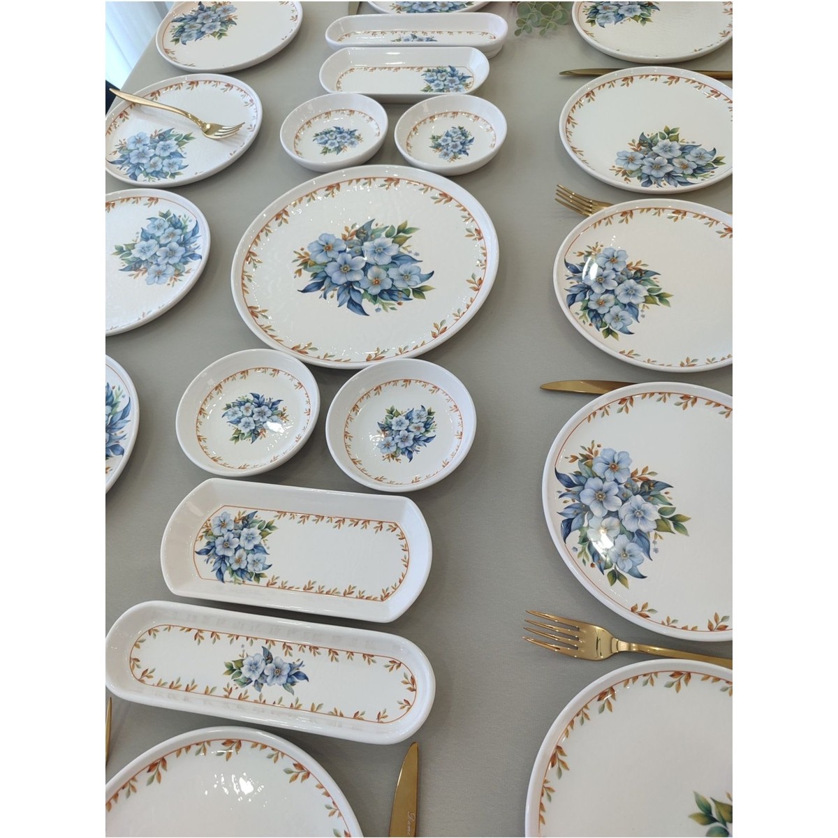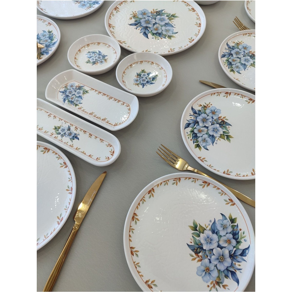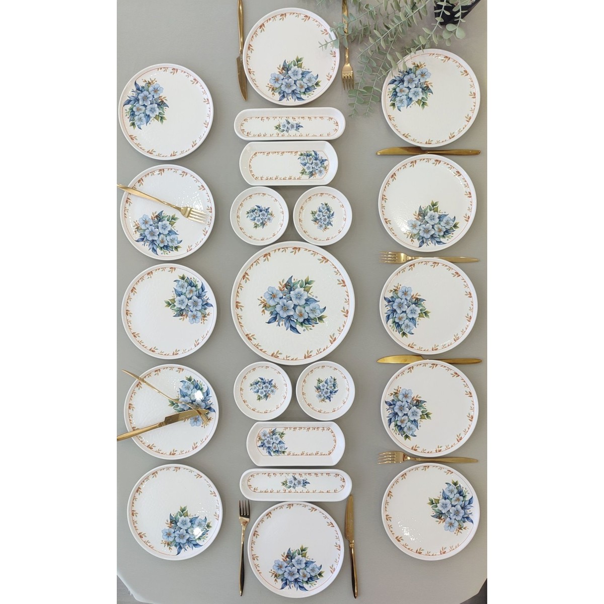 Yiğit Seramik Züccaciye Yediveren Çiçeği 12 Kişilik 21 Parça Kahvaltı Takımı Mavi Desenli
