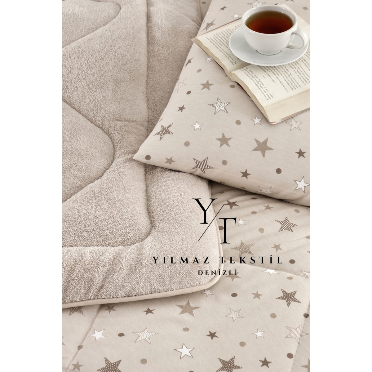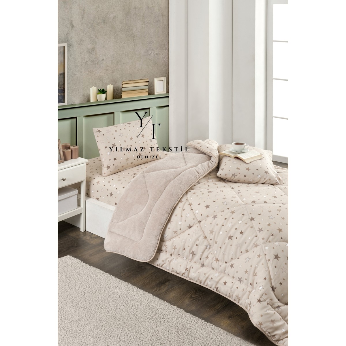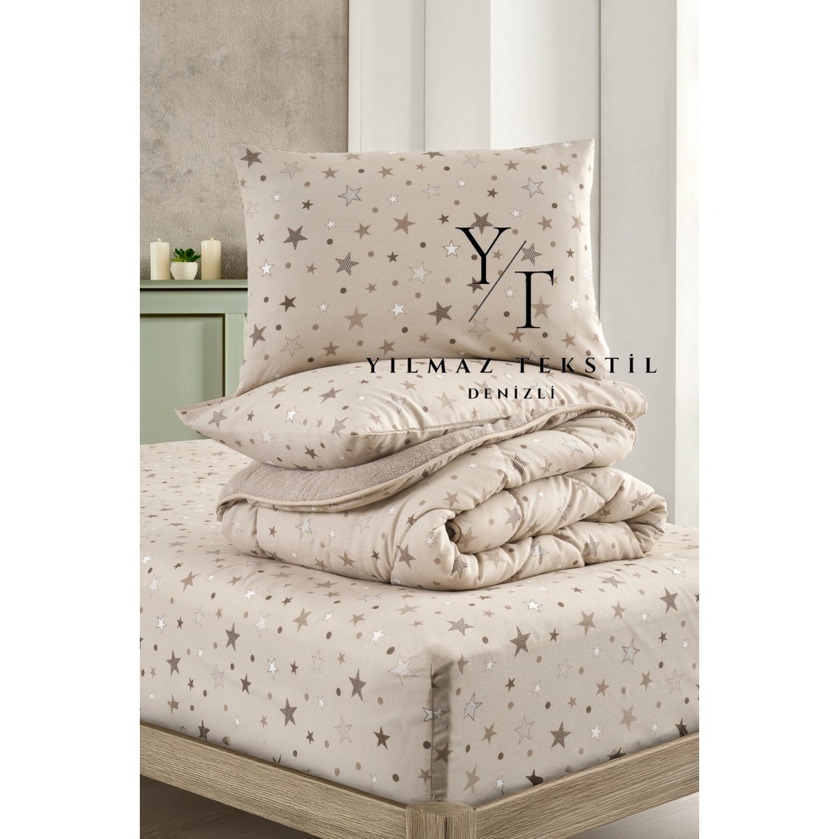 Tek Kişilik Welsoft Yorgan Uyku Seti Lastikli Çarşaflı | Çeyiz Seti | Çeyiz Takımı | Bej Yıldız