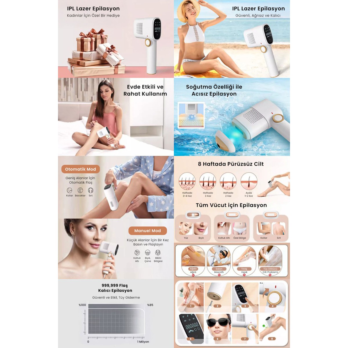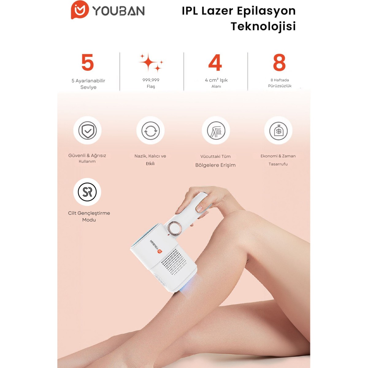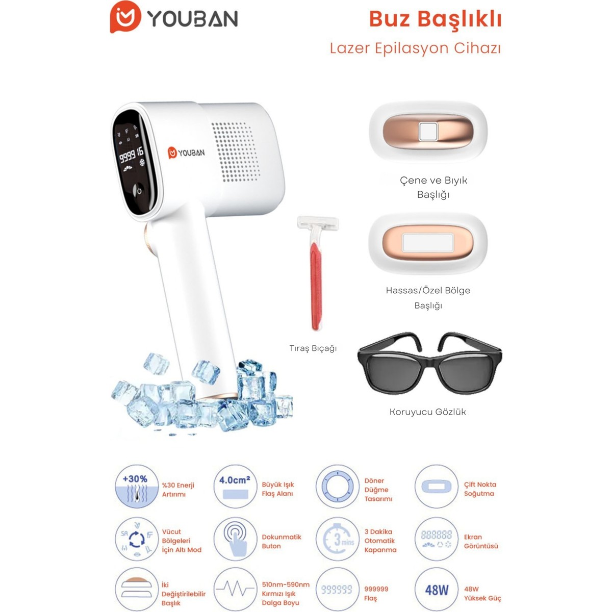 • Youban IPL Buz Lazer Epilasyon 999.999 Atım Otomatik/Dokunmatik Ekran Ağrısız Vücut Yüz Cihazı