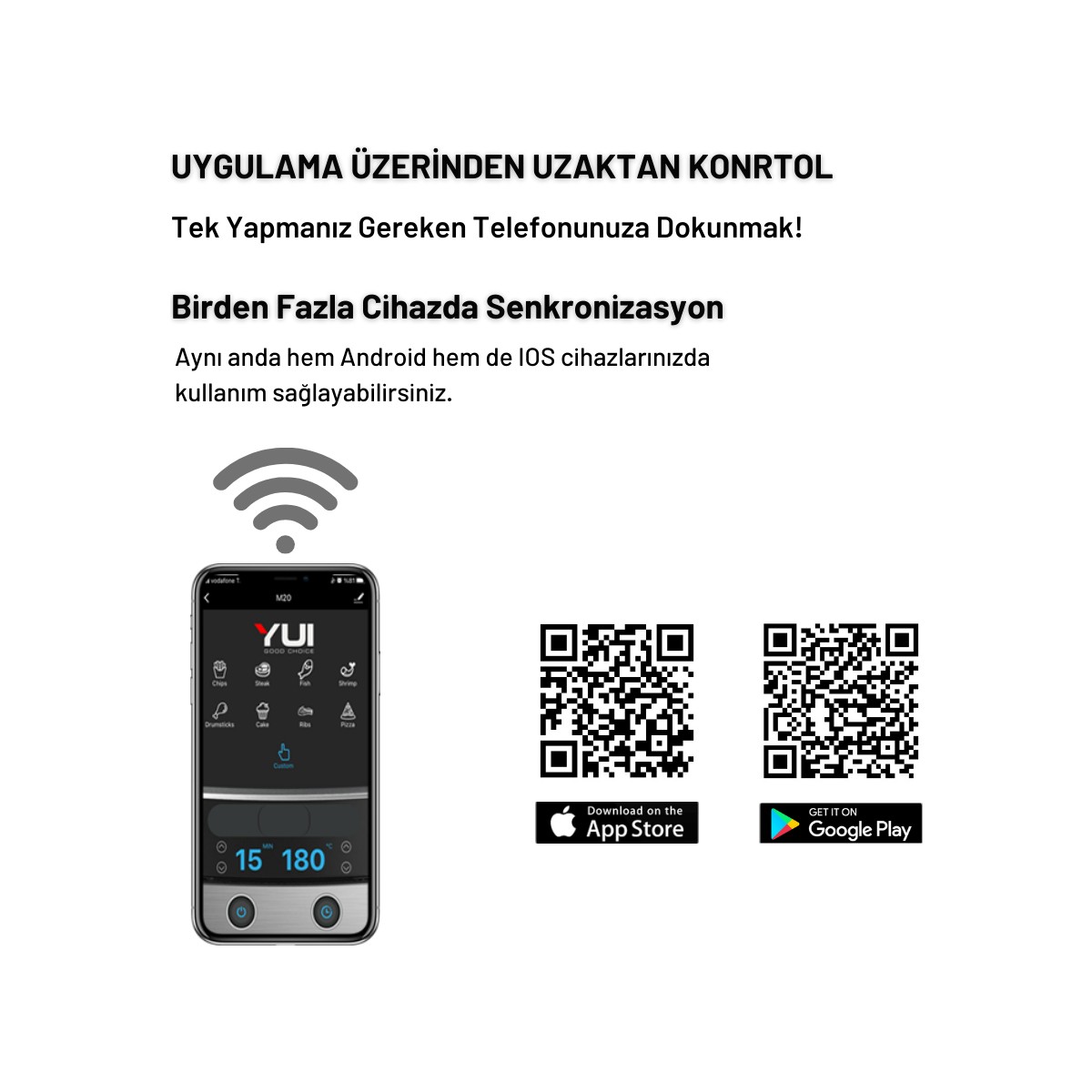 - Yui M20 Maxifry, kullanımı kolay bir dokunmatik ekranla donatılır. Bu sayede ayarları kolayca kontrol edebilir ve istediğiniz programları seçebilirsiniz.