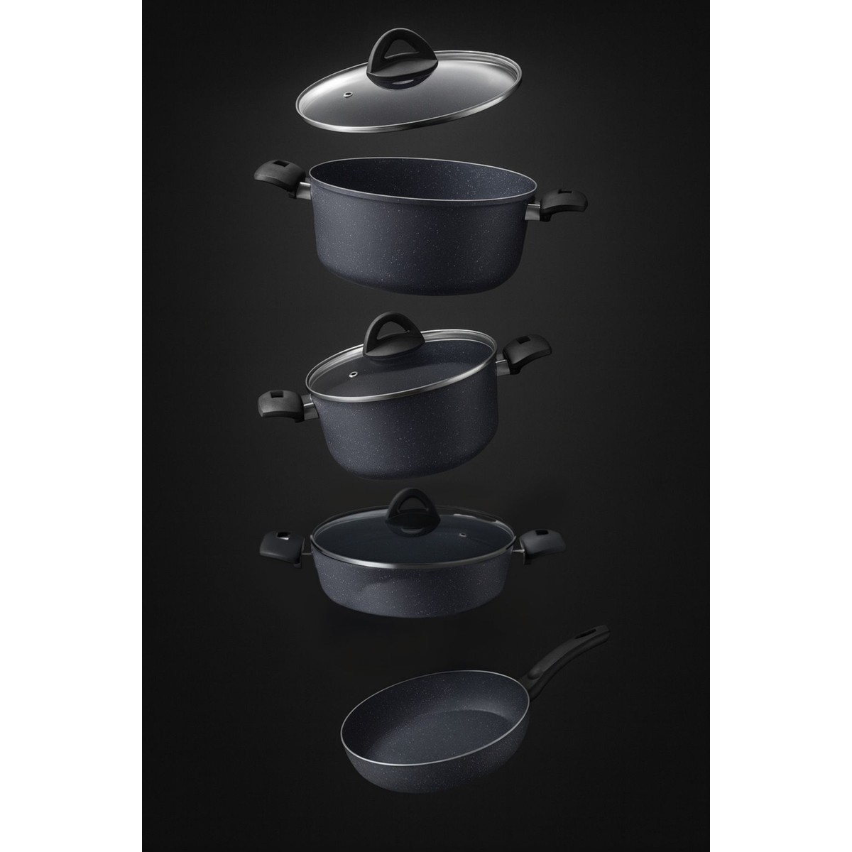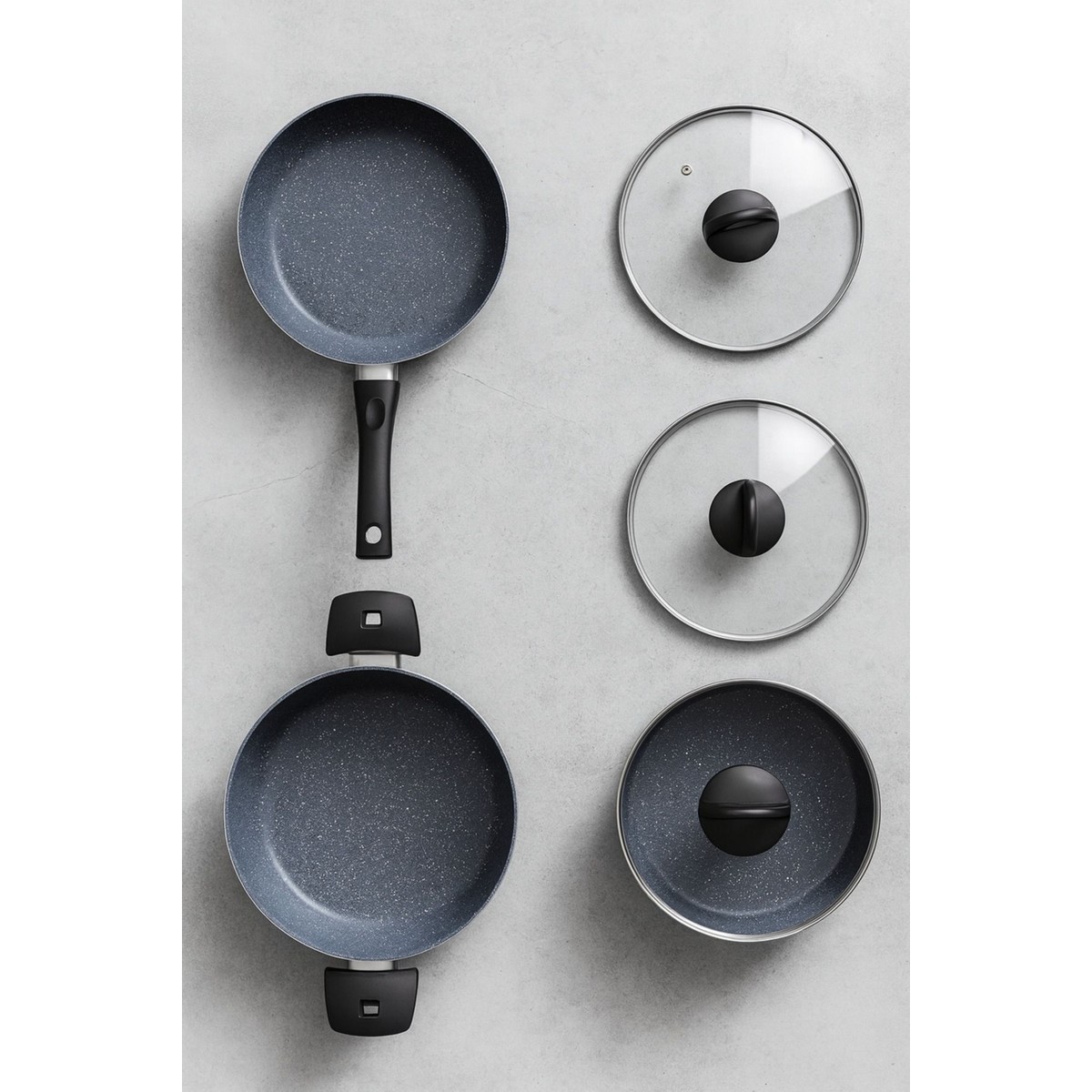7 Parça Almeria Gri Granit Dik Tencere ve Tava Seti – 20 cm 2.5l, 24 cm 4.5l, 26 cm 3l, 26 cm Tava