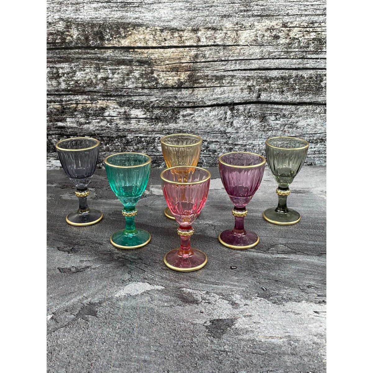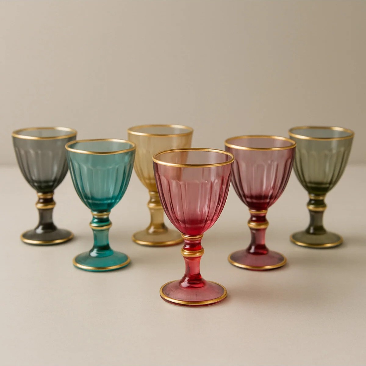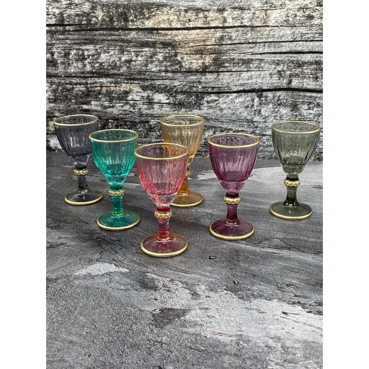 Yzhome Cam Renkli Yaldızlı Kahve Yanı Su Bardağı Kadeh Kupa Bardak 75 ml 6’lı