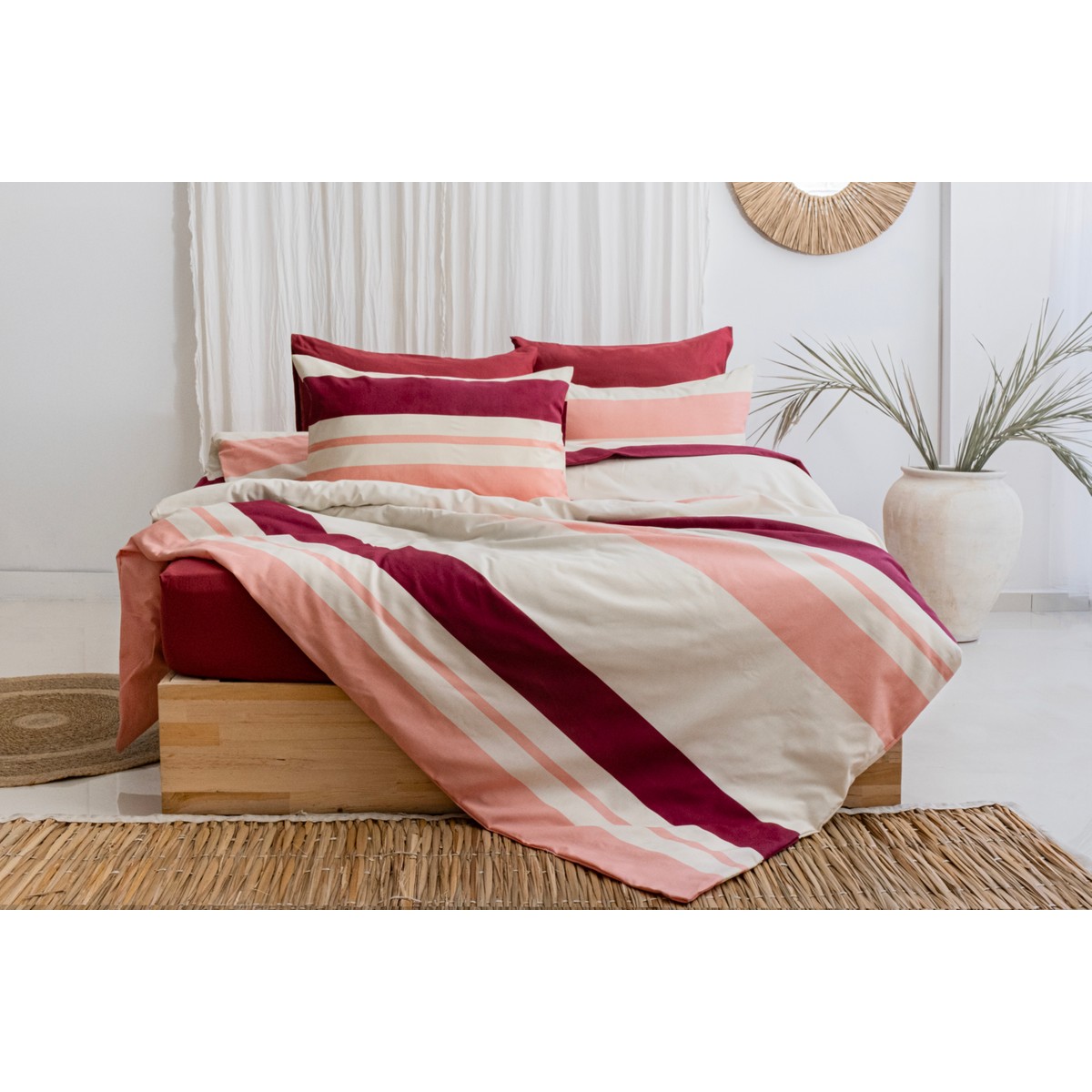 Modern Çizgili Nevresim Takımı Çift Kişilik Çarşafı Lastikli