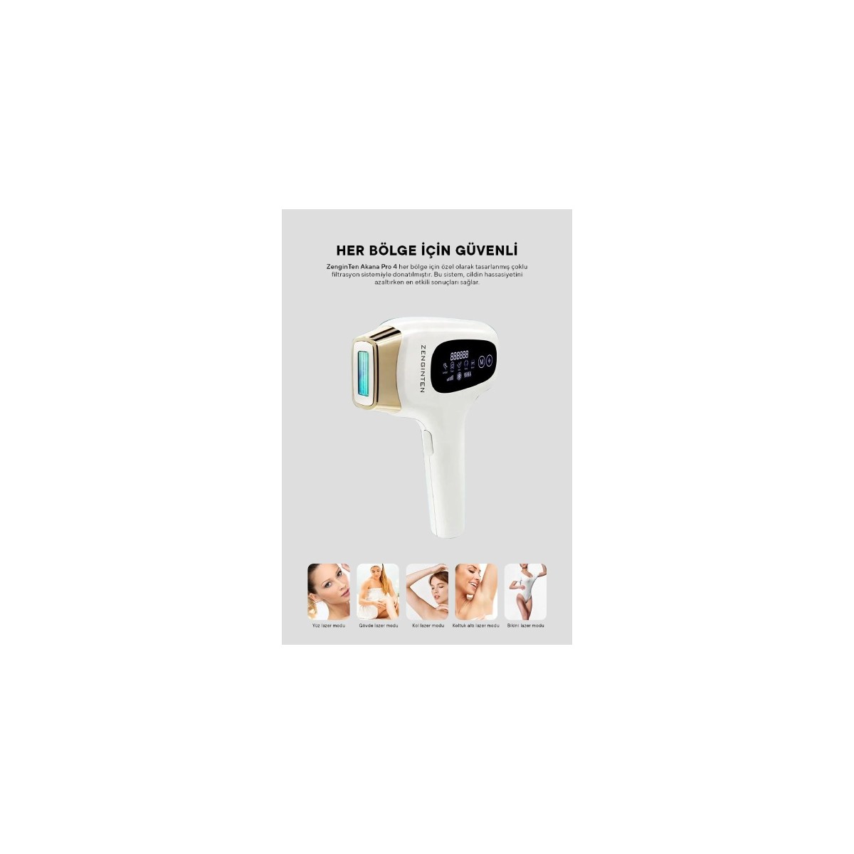 Güvenli kullanım için otomatik kapanma özelliği sayesinde, cihazınızın açık unutulması durumunda kendiliğinden kapanarak olası kazaların önüne geçer; Tüm vücut için uygun uygulama alanı ile bacaklardan koltuk altı, bikini bölgesi ve yüz dahil olmak üzere her bölgede etkili epilasyon imkanı sunar; 2 yıl resmi distribütör garantisi ile satın aldığınız Akana pro 4 buz ıpl lazer epilasyon cihazınızda uzun süreli güven ve destek sağlar; Farklı cilt tiplerine ve kıl yoğunluğuna göre ayarlanabilen kademe seçenekleri ile kişisel ihtiyaçlarınıza özel epilasyon deneyimi yaşatır; Kablolu tasarımı sayesinde kesintisiz ve güçlü performans sergileyerek, hızlı ve etkili sonuçlar elde etmenize olanak tanır;