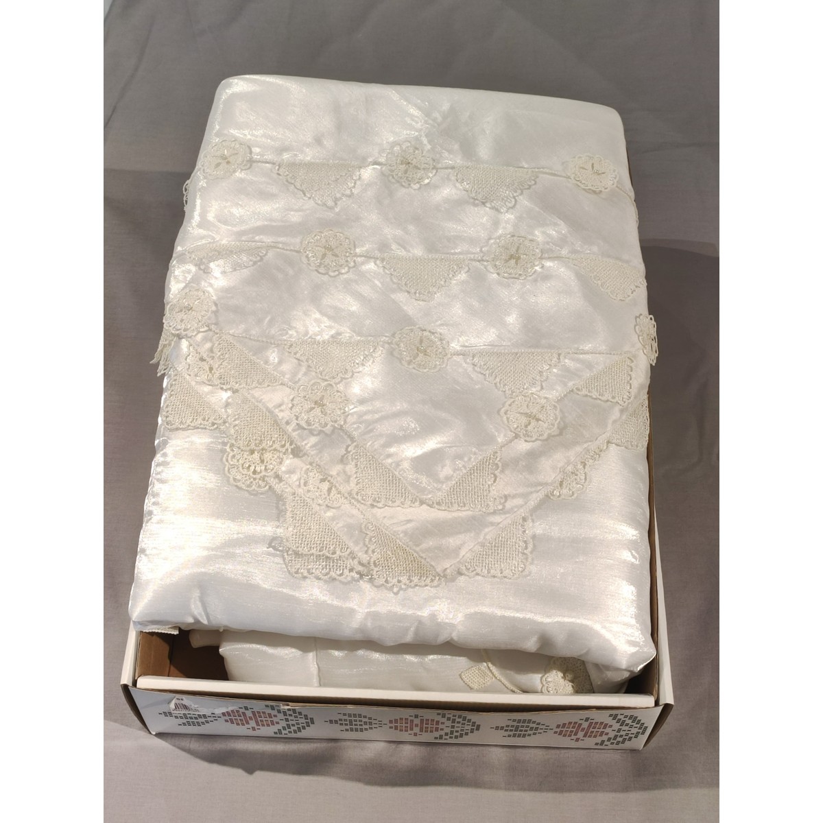 Takım İçeriği: 1 adet iğne oyası işlemeli seccade 1 adet iğne oyası işlemeli başörtüsü