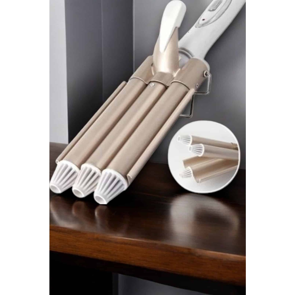 Üçlü saç maşası, profesyonel görünümlü, doğal ve dalı bukleler oluşturmak için mükemmel bir araçtır. Turmalin seramik teknolojisini kullanarak saçınıza zarar vermeden büyük miktarlarda negatif iyon üretir ve bu sayede saçı nemlendirir, elektriklenmeyi önler. Böylece saçınız daha sağlıklı ve parlak görünürken, şekillendirdiğiniz bukleler de kalıcı hale . 25 mm çapında 3 namlulu tasarımıyla, orta uzunluktaki ve uzun saçlarda mükemmel sonuçlar elde edebilirsiniz. PTC ısıtma elemanı sayesinde saç maşası yalnızca 30 saniye içinde 170°C’ye ulaşır, sıcaklık hızlıca ve eşit şekilde yayılır, böylece saçı nazikçe şekillendirirsiniz. 170°C ve 220°C arasında ayarlanabilir sıcaklık seçenekleri, farklı saç tiplerine uygun kullanım imı sunar. Ergonomik tasarıma sahip kaymaz tutamak ve haşlanma önleyici uçlar, kullanım esnasında güvenliği artırırken, istenmeyen yanma risklerini ortadan kaldırır. Ayrıca, ısı yalıtımlı ön braket, cihazı güvenle bırakabilmenizi sağlar. Üçlü saç maşası, kolay kullanım ve üstün performansı ile her zaman mükemmel bukleler oluşturmanızı sağlar.