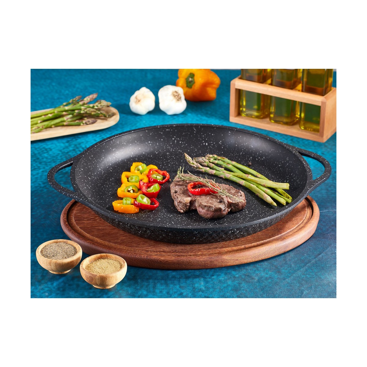 • Yüksek kaliteli granit malzemesi sayesinde uzun ömürlü kullanım sunan bu tava, kavurma ve balık pişirme işlemlerinizde mükemmel sonuçlar elde etmenizi sağlar.