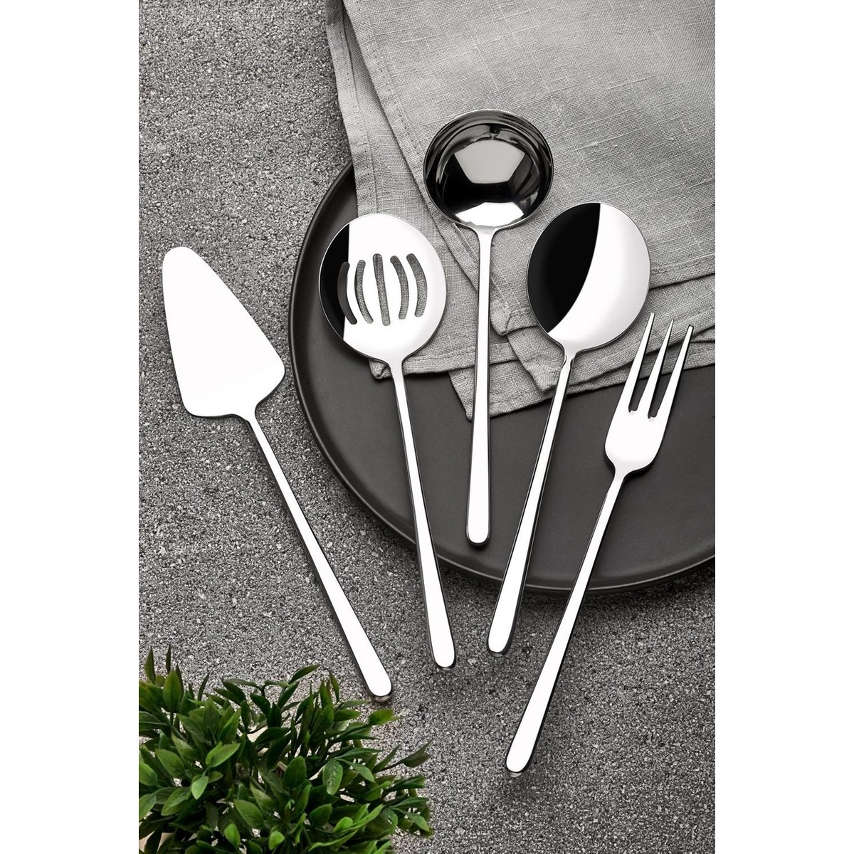 5 parçadan oluşan set, çatal, bıçak, kaşık, çatal ve bıçağı içerir, böylece her türlü yemek için eksiksiz bir servis imkanı sağlar