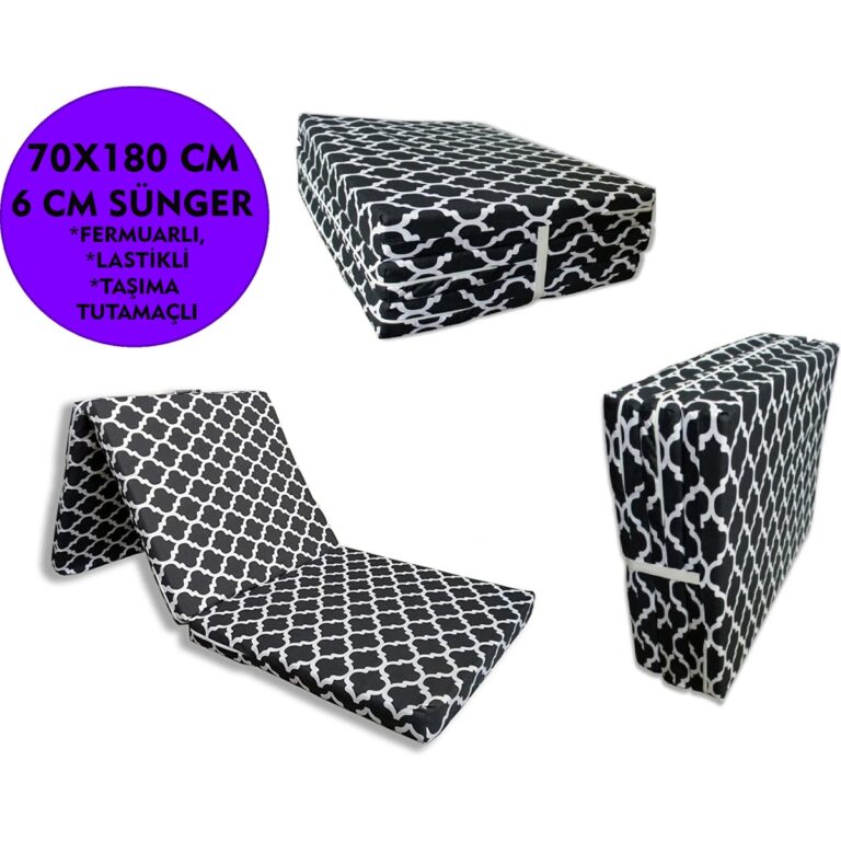 Nelson Katlanır Süngerli Mınder 70 x 180 x 6 cm Büyük Karaçatı Minder Fermuarlı